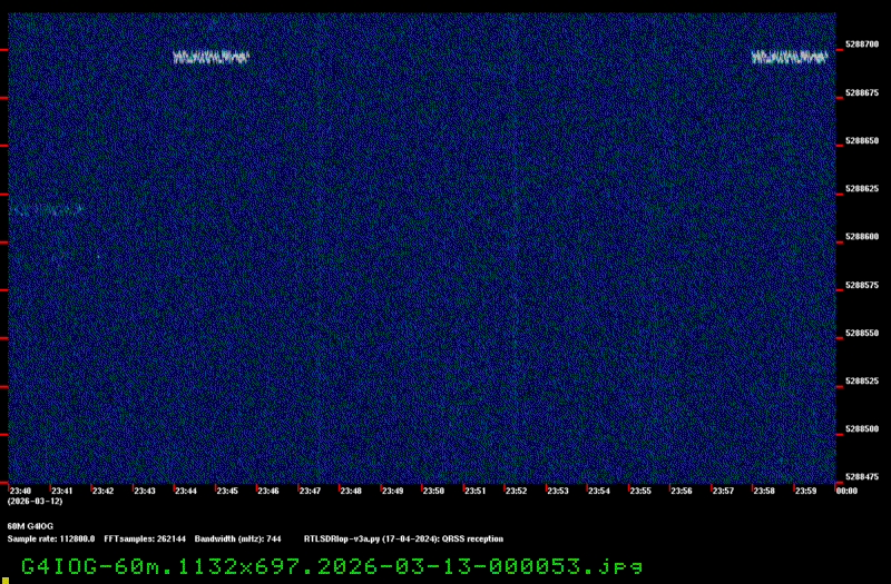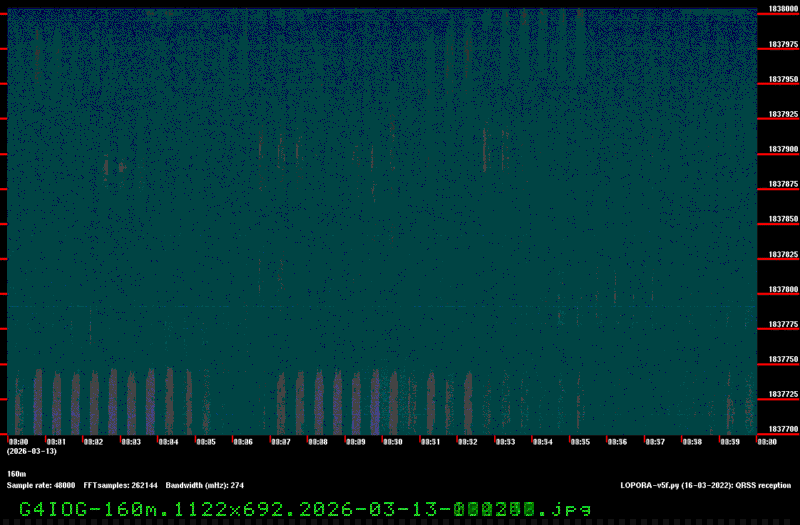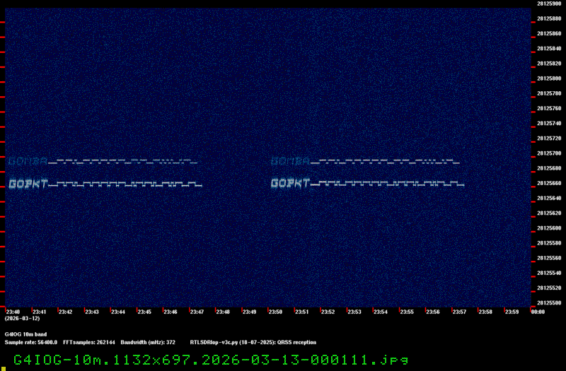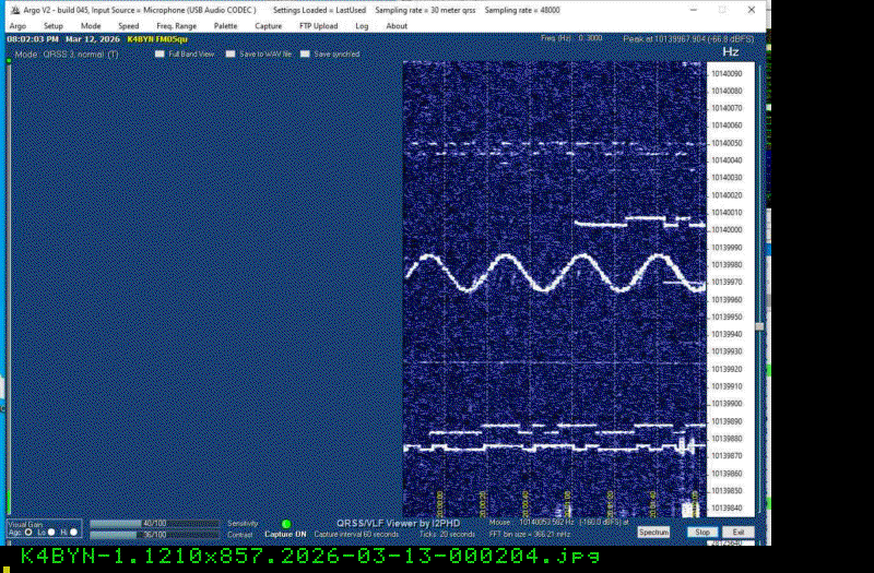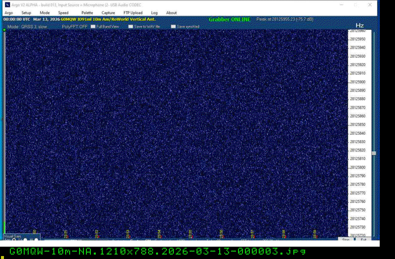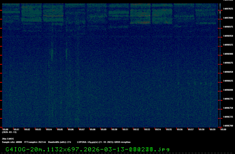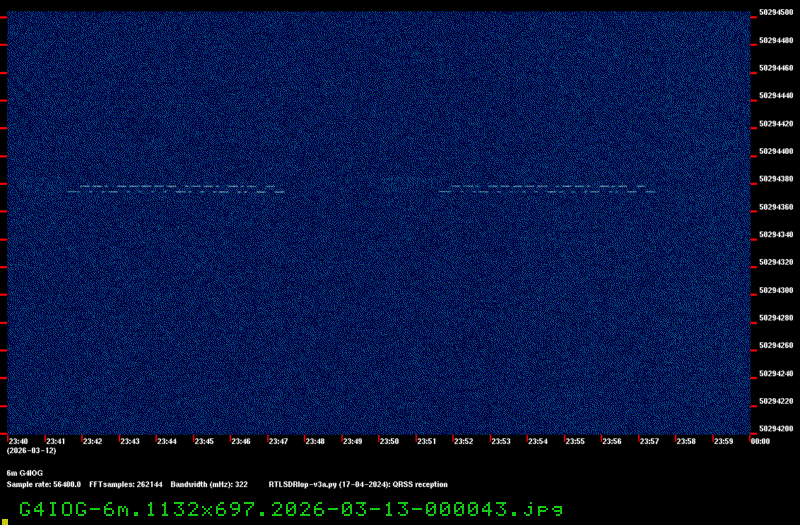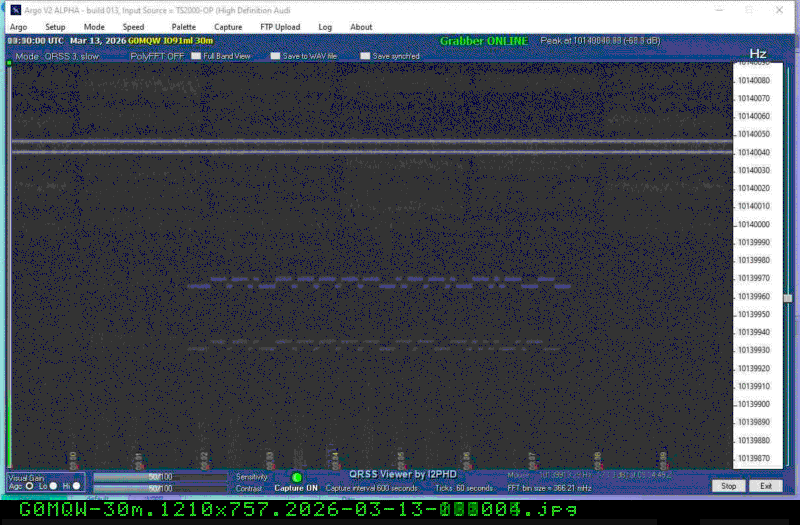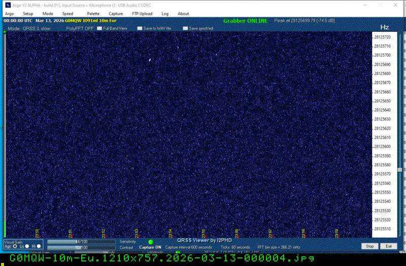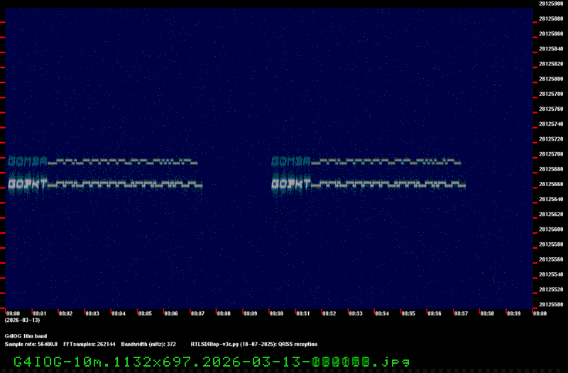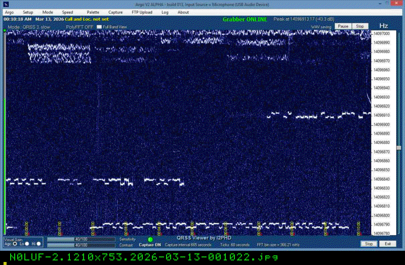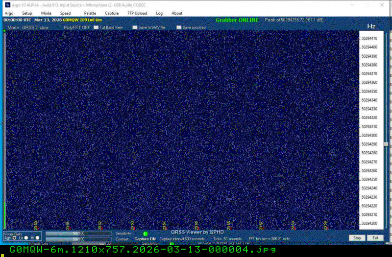 For each source, data is grouped by Zulu day. For each source on each zulu day, there are two images, composed of frames which are images seized from qrss grabbers. The image on the left is the average of all the frames; the one on the right is an animated GIF made up of all the frames. A caption in green tells what the source was, prehaps the band, and roughly what time the image was made or seized.
