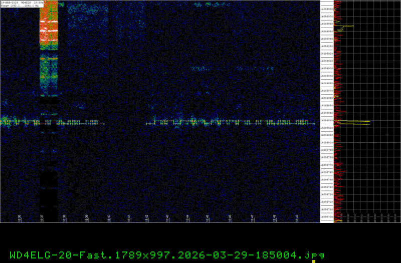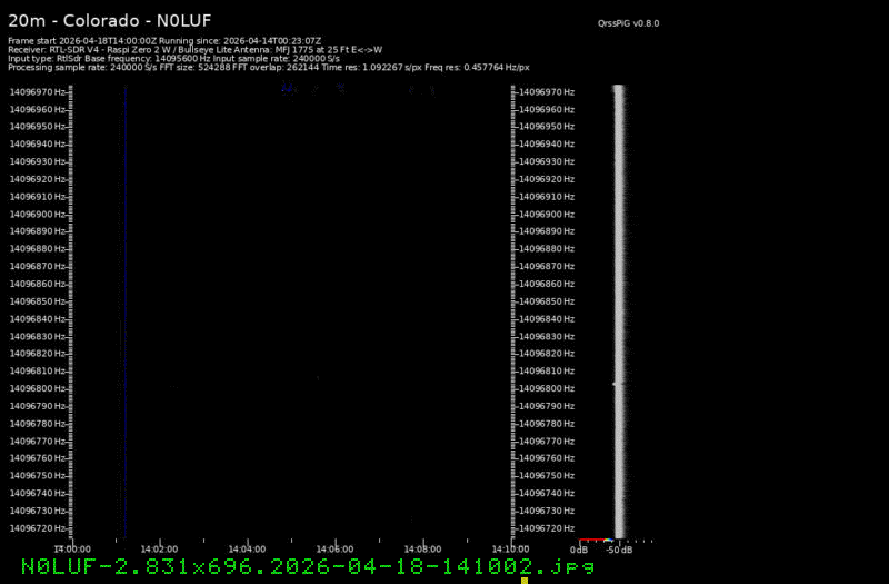 For each source, data is grouped by Zulu day. For each source on each zulu day, there are two images, composed of frames which are images seized from qrss grabbers. The image on the left is the average of all the frames; the one on the right is an animated GIF made up of all the frames. A caption in green tells what the source was, prehaps the band, and roughly what time the image was made or seized.